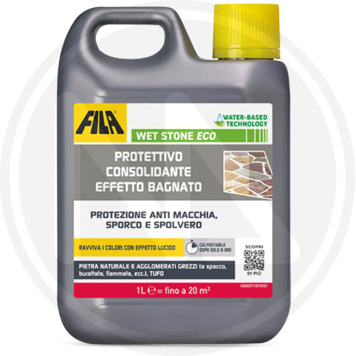 FILA Surface Care Solutions, WET STONE ECO, Protettivo Pietra Naturale Tonalizzante ad Effetto Bagnato, Idrorepellente per Pietra, Antimacchia e Antisporco, Adatto al Pavimento Esterno ed Interno, 1L