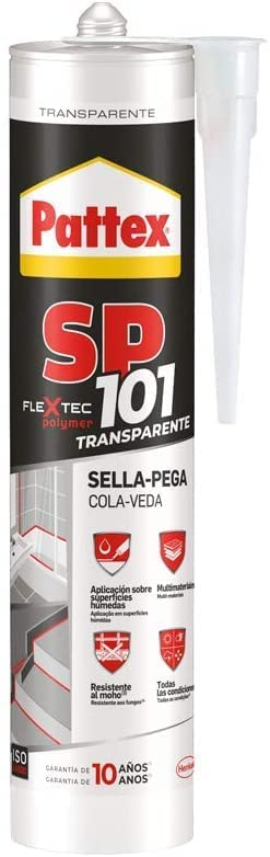 Confezione – Pattex SP101 sigillante polimerico, sigilla e incolla più materiali sia dentro che fuori, a base Flextec, trasparente, 1x 280ml cartuccia, C