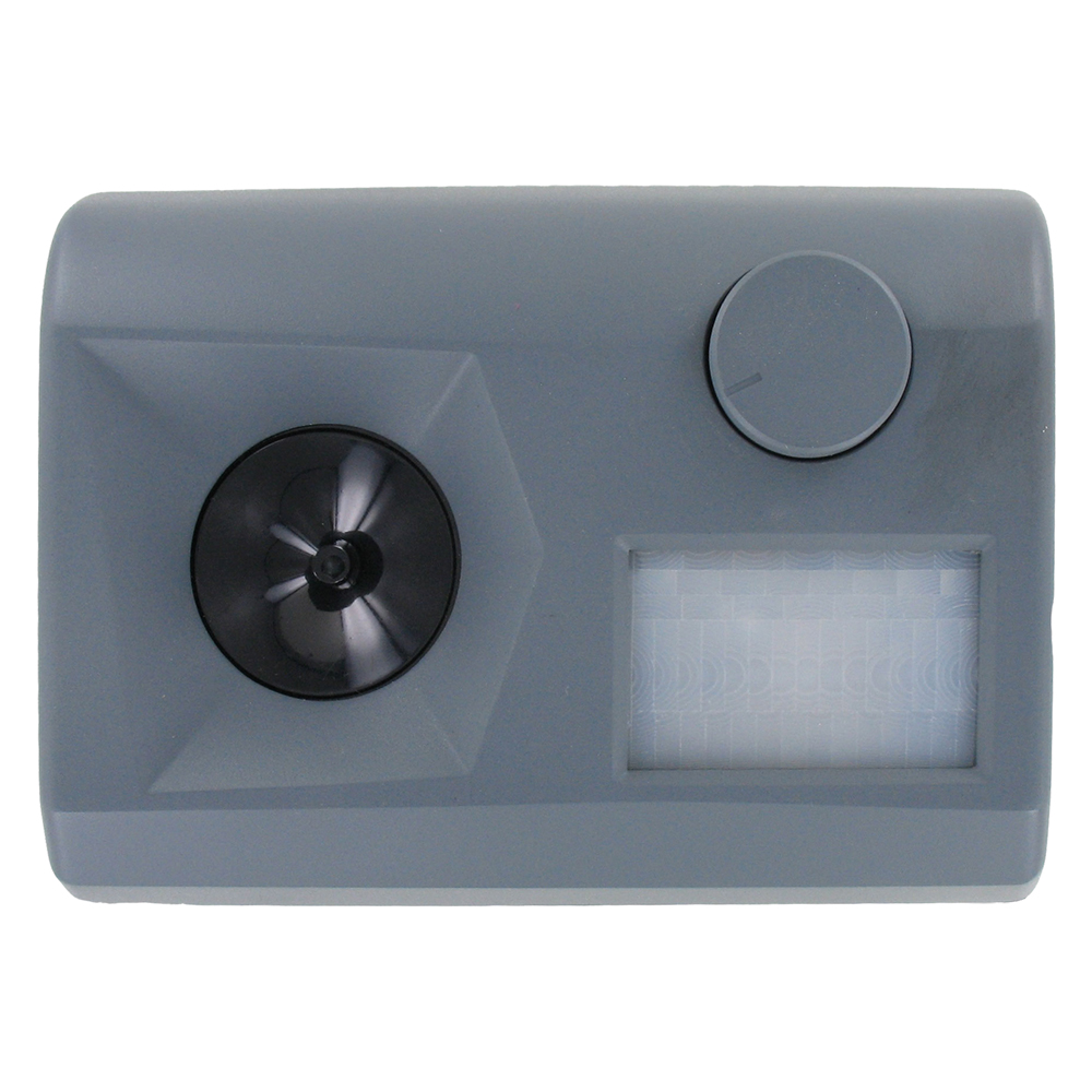 Ad ultrasuoni, con 7 frequenze regolabili. Angolo di rilevamento pari a 90° e azione infrarossi fino ad un max. di 16 metri. Elettronico. Spia di funzionamento, a 4 batterie (non incluse).