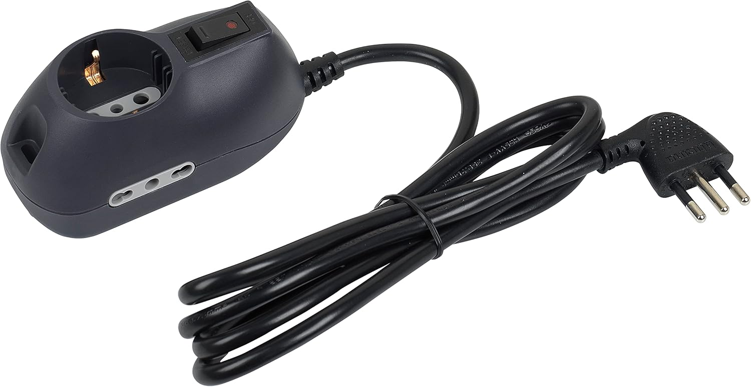 BTICINO Ciabatta Multipresa Elettrica Slot 9 Posti, 1 Polivalenti Schuko 10/16A + 2 Bivalenti 10/16A, Ciabatta Elettrica con Interruttore e Cavo 1,5m Spina 10A, Robusta Salvaspazio Flessibile, Nero [Classe di efficienza energetica A+]